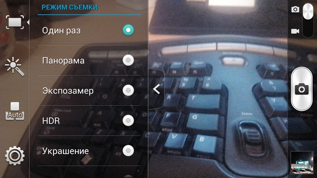 Інтерфейс видошукача стандартний для ОС Android 4.2. Додаток камери має відносно невелику кількість налаштувань, користувачеві доступні в основному базові настройки параметрів зйомки. Автофокусування проходить швидко і чітко. Трохи довше відбувається HDR-зйомка, але при цьому, вона швидше, ніж на інших смартфонах, що мають аналогічну «начинку».