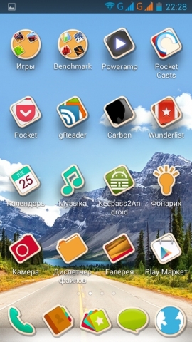 Іконки встановлених на смартфон Huawei Ascend G700 додатків мають нестандартну форму, а тому ярлики встановлених користувачем програм, Ви бачите на певному тлі, який виглядає трохи більш вдало з одними темами оформлення і менш вдало з іншими стандартними темами оформлення.