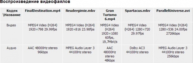 Стандартний відеоплеєр, використовуючи можливості апаратної платформи, відтворює відео з роздільною здатністю 720р всіх популярних кодеків, крім mkv (відтворюється ривками). Труднощі у відеоплеєра викликало відтворення звуку АС3, але це поширена проблема у смартфонів, побудованих на основі даної апаратної платформи. Відтворювати відео з роздільною здатністю більше 720р (HD) на дисплеї з роздільною здатністю 480 х 854 пікселів безперспективно, тому що апаратна платформа до нього не пристосована, а його перегляд навряд чи принесе якесь задоволення.