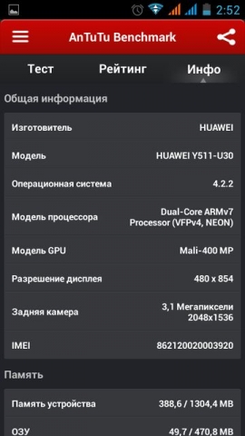 Модель Huawei Ascend Y511 обладнана двома камерами - основною і фронтальною.