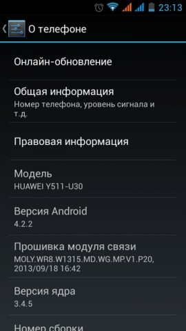Працює смартфон Huawei Ascend Y511 під управлінням операційної системи Android версії 4.2.2 в чистому вигляді. Виробник вніс тільки невеликі «косметичні» зміни, не змінюючи функціональність.