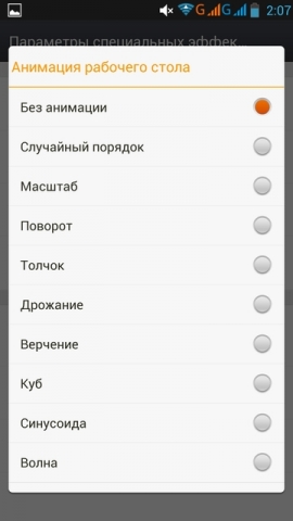 В налаштуваннях можна вибрати необхідну кількість робочих столів. Їх кількість можна регулювати в межах від одного до дев'яти (можна активувати кругову прокрутку робочих столів). Також користувач може на свій розсуд встановити один з анімаційних ефектів перегортання робочих столів.