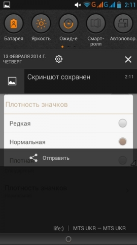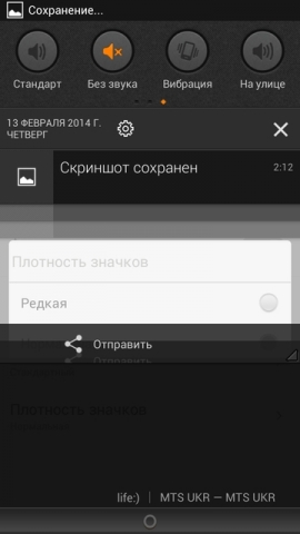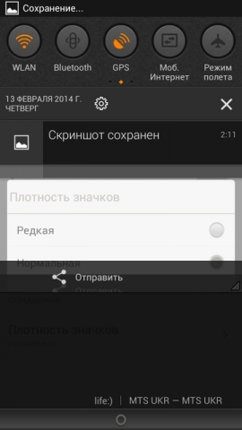 Панель повідомлень містить три групи перемикачів. Перша група містить настройки, які відповідають за параметри дисплея, друга група перемикачів відповідає за роботу комунікаційних модулів, а третя група керує режимами звуку.