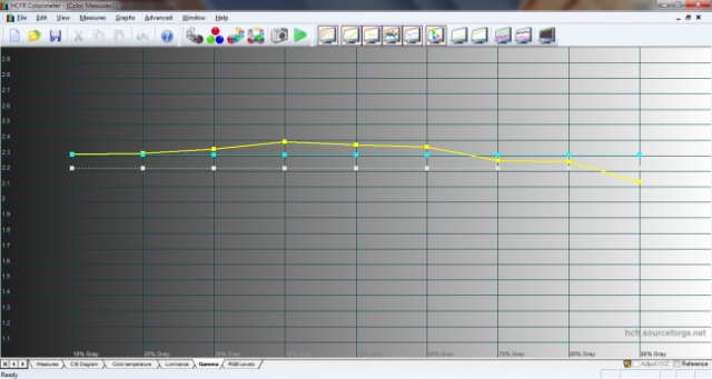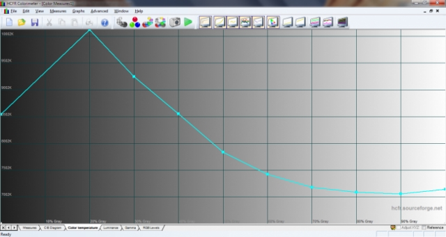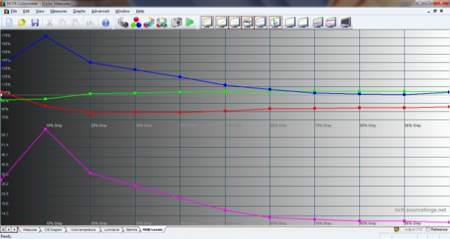 Заводське калібрування матриці досить непогана. Колірний обхват трохи ширше еталонного цветовго охоплення sRGB. Значення колірної гами також близько до еталонного показника. Єдиним недоліком заводського калібрування є значно завищена колірна температура.