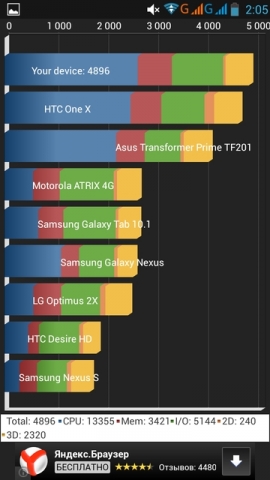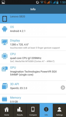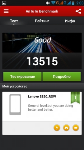 В цілому дисплей можна охарактеризувати як хороший, а якщо враховувати цінову категорію пристрої, то виявлені недоліки калібрування взагалі можна не брати до уваги. Зображення на екрані смартфона Lenovo IdeaPhone S820 виглядає барвисто і «соковито».