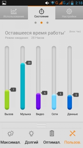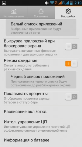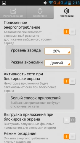 Пристрій має фірмовий додаток Lenovo Power, що дозволяє користувачеві гнучко налаштувати енергоспоживання смартфона. Програма показує рівень енергоспоживання кожного з встановлених на смартфон додатків, а також прогнозоване час автономної роботи пристрою в тому чи іншому режимі енергозбереження. Утиліта пропонує вибрати один з чотирьох профілів енергоспоживання, кожен з яких користувач може відкоригувати на власний розсуд. Користувач в різних режимах енергоспоживання може вибирати, які програми повинні продовжувати свою роботу у фоновому режимі, а які будуть примусово закриті. Також можна включити «вивантаження» всіх утиліт з пам'яті при переході смартфона в сплячий режим. Підтримується включення / вимикання телефону в зазначений час доби.