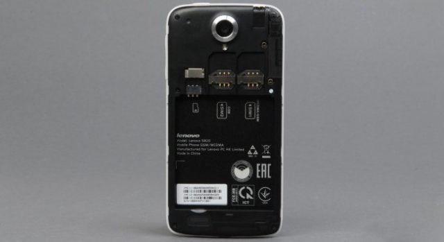 Якість збірки корпусу смартфона Lenovo IdeaPhone S820 середнє - місцями зазори між деталями корпусу досить великі (за сучасними мірками), через що при скручуванні корпус поскрипує.