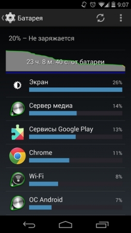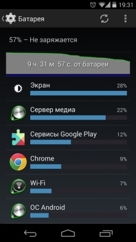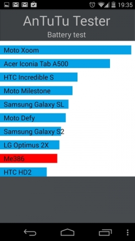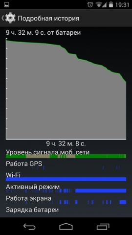 При помірному використанні можливостей «начинки» (півгодини гри, наприклад Real Racing 3, кілька хвилин телефонних розмов, кілька годин інтернет-серфінгу, відправлення текстових повідомлень і активна синхронізація даних через мережу Wi-Fi або мобільну мережу) смартфон без підзарядки може пропрацювати один робочий день. Заряджається смартфон з 15% до 100% за дві години.