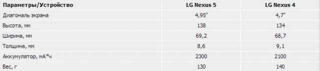 У смартфоні LG Nexus 4 був встановлений дисплей з діагоналлю 4,7 дюйма, а в модель LG Nexus 5 встановлений дисплей з діагоналлю 4, 95 дюйма. При цьому розміри корпусу смартфона збільшилися дуже незначно.