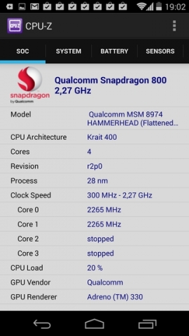 Складно говорити про тотальну «всеїдності» апаратної платформи, встановленої в модель LG Nexus 5, так як вона дуже схильна до нагрівання, через що тактова частота примусово знижена, і не розпізнає деякі популярні видеокодеки. Проте, працює інтерфейс при будь-яких умовах плавно, а самі ресурсомісткі 3D-ігри запускаються на максимальних налаштуваннях.