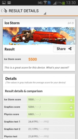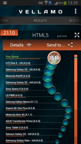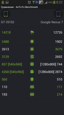 Смартфон має непогані показники продуктивності, які свідчать про те, що у пристрої не виникне проблем, як з запуском казуальних додатків, так і програм вимагають інтенсивної обробки 3D-інформації. У синтетичному тесті AnTuTu Benchmark модель Samsung Galaxy S4 mini набрала 14000 балів.