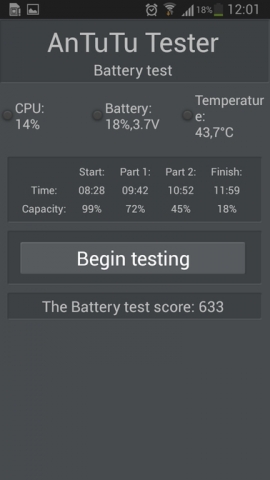 Автономну роботу смартфона Galaxy S4 mini забезпечує літій-іонна акумуляторна батарея ємністю 1900 мАг. Модель Samsung Galaxy S4 mini не може похвалитися феноменальною автономністю. У синтетичному тесті Antutu Tester Dual-SIM модифікація Galaxy S4 mini набрала 633 бали. Наприклад, смартфон Fly IQ444 Diamond 2 набрав 906 балів, а модель Samsung Galaxy Mega 6.3 - 872 бали. Galaxy S4 mini під максимальним навантаженням пропрацював без підзарядки три з половиною години. При помірному використанні мультимедійних можливостей смартфона одного заряду батареї буде достатньо для двох днів роботи без підзарядки.