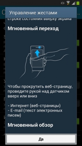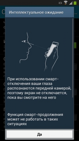 Користувач може скористатися функцією S Beam для передачі даних на інші пристрої лінійки Galaxy. Підтримується управління жестами (без необхідності стосуватися дисплея). Смартфон розпізнає голосові команди. Як і в моделі Samsung Galaxy S4, фронтальна камера стежить за очима користувача і якщо він дивиться на дисплей, то екран підсвічується, а якщо відводить очі і не дивиться на смартфон, то екран згасає. Технологія, яка називається «Смарт-пауза», має такий же принцип роботи, як і Інтелектуальне очікування погляду, але працює тільки в відеоплеєрі. Функція Смарт-прокрутка дозволяє, відхиляючи смартфон в сторону, перегортати сторінки браузера.