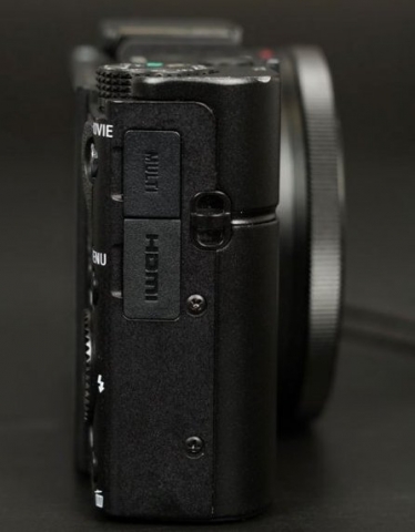 На лівій і правій боковинах фотокамери є вушка, призначені для кріплення ремінця, який одягається на зап'ясті. Крім того, на правій бічній панелі розташовуються роз'єм HDMI і порт microUSB, призначений для підключення зарядного пристрою і синхронізації з персональним комп'ютером. Обидва роз'єми прикриті гумовими заглушками.
