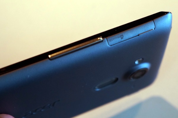 Кнопка включення / блокування телефону і 3.5 мм роз'єм для навушників знаходяться на верхній межі, коли ви під'єднуєте навушники до телефону, то він вібрує. На правій грані знаходяться слоти для SIM-карт. Що стосується двох SIM-карт, то одна з них підтримує 2G / 3G і слот для неї виконаний у форматі micro, а друга mini-SIM підтримує тільки 2G. На нижній грані знаходиться microUSB порт.