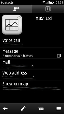 В Телефонного книзі ви можете сортувати контакти по імені або прізвища. Кожному абоненту можна додавати фотографію. У профілі контакту є можливість вказати кілька телефонів, адреса, електронну пошту, аккаунт Facebook і Twitter. В цьому випадку, в додатку Social будуть відображатися поновлення статусу абонента з соціальних мережах, а адреса вказуватися на картах Nokia Maps.