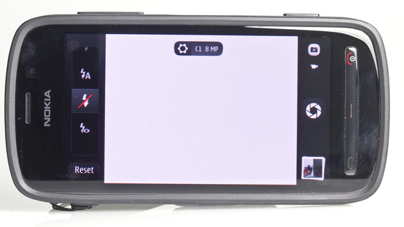 Знімок робиться за допомогою натискання на іконку з правого боку екрану або за допомогою фізичної кнопки управління камерою, розташованою на бічній грані. Як і на багатьох смартфонах ( А також великій кількості компактних фотоапаратів), точку фокусування можна змінити, натиснувши в потрібному вам місці екрану. Ця система досить чуйна, хоча в певні моменти телефону потрібно деякий час, щоб обробити запит. Є в наявності і цифровий зум, скористатися яким можна або використовуючи перемикач збоку пристрою, або за допомогою «щипка» екрану.