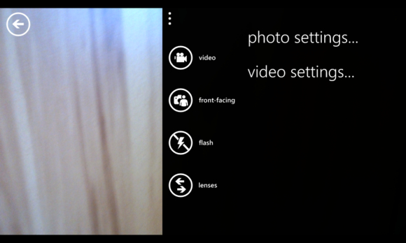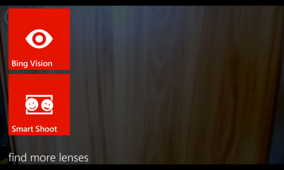 У додатку Камера ви знайдете кілька цікавих доповнень, таких як Bing Vision, що дозволяє сканувати штрих-коди, Smart Shoot, що аналізує фотографії, щоб переконатися, що всі люди на них посміхаються і мають відкриті очі. Решта доповнення можна встановити з Windows Phone Store. Для того, щоб зробити фотографію, достатньо натиснути в будь-якому місці екрану, це не дуже зручно, особливо якщо ви намагаєтеся всього лише відкрити меню. На щастя, є фізична кнопка, за допомогою якої можна робити знімки.