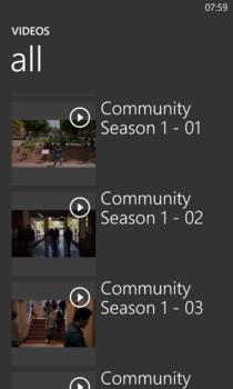 За відтворення відео також відповідає додаток Music + Videos. На даний момент в Windows Phone немає ніяких онлайн магазинів відео, тому контент потрібно завантажувати з інших місць.