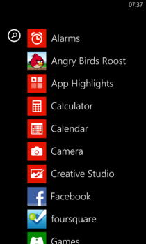 Робота з операційною системою проходить досить гладко, хоча двоядерний процесор Snapdragon, частотою 1 ГГц і 512 Мб оперативної пам'яті навряд чи можна назвати найбільш прогресивною комбінацією. Праворуч від головного екрану знаходиться список всіх встановлених додатків. Програми розташовані в алфавітному порядку, звідси ви можете встановлювати додатки на стартову сторінку.
