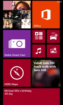 Розблокувавши телефон, ви потрапляєте на головний екран, де ви знайдете звичну для телефонів Windows систему Live Tile. Плитки з програмами можна видаляти або змінювати їх розміри. І це не просто статичні зображення, в плитках відображається інформація.