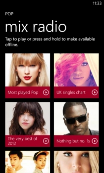 Другим плеєром є Nokia Music. Функціонально він дуже нагадує плеєр Music + Videos, але тут є власний магазин і Mix Radio, за допомогою якого ви зможете створювати власні добірки музики з безкоштовної бібліотеки Nokia.