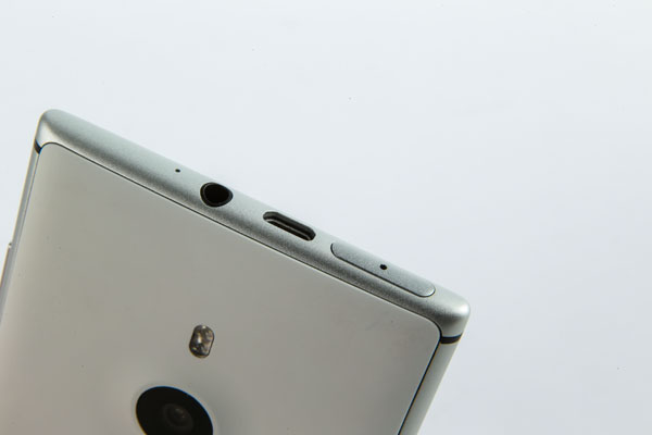 Зверху Nokia Lumia 925 знаходяться слот microSIM карти, USB порт, 3,5 мм роз'єм для навушників і мікрофон.