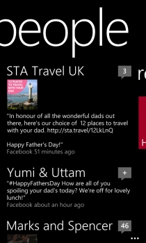 Другою частиною програми People є список всіх останніх оновлень Facebook і Twitter. А третя частина відповідає за створення груп контактів, наприклад, Сім'я або Друзі.