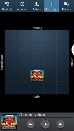 Пісні можна сортувати за виконавцем, альбомом, списку Параметри, назвою або папці. Крім того, Galaxy Mega відсортує і проаналізує всі пісні на вашому пристрої, щоб ви змогли вибрати музику в залежності від вашого настрою.
