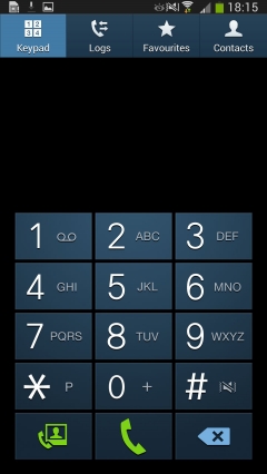 Програма для набору номера виглядає дуже привабливо: великі блакитні кнопки на чорному тлі. Тут є підтримка розумного набору, тобто у вас є можливість привласнити коротку комбінацію цифр якомусь абоненту.