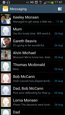 Стандартна програма для відправки СМС була кілька поліпшена призначеним для користувача інтерфейсом TouchWiz, наприклад, були додані фотографії профілю на головну сторінку і в стрічку повідомлень. Розмір шрифту тепер можна збільшувати за допомогою кнопки управління звуком, що сподобається людям з низьким зором.