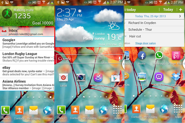 Телефонна книга в Samsung Galaxy S4 має простий інтерфейс, дуже легко знайти потрібного вам людини. Увійдіть до свого облікового запису Google під час завантаження операційної системи і всі контакти будуть синхронізовані. Крім того, ви можете синхронізувати телефон з акаунтами Facebook і Twitter. Ваша телефонна книга буде негайно заповнена контактами ваших друзів.