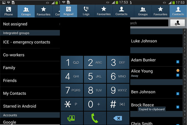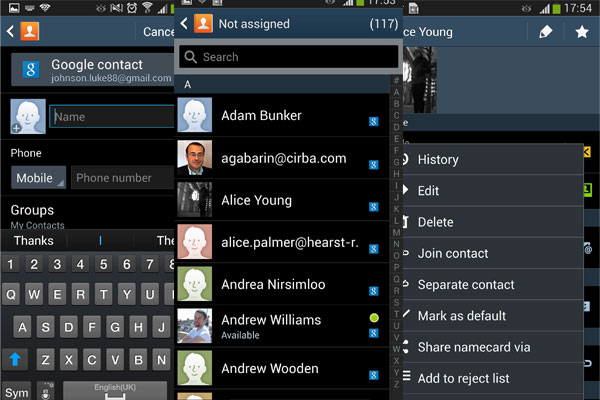 Ваші улюблені контакти можна винести на робочий стіл. Є можливість розумного набору. Ви можете легко зв'язати між собою контакти, а потім вибрати інші профілі соціальних мереж і з'єднати всі в одному місці. У Samsung все ще немає сервісу, що пропонує пов'язати різні акаунти з різних соціальних мереж, тому все це потрібно робити вручну.