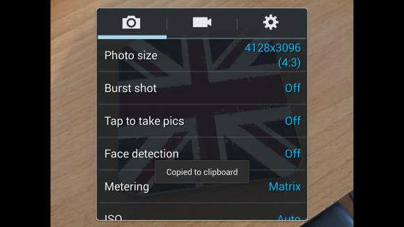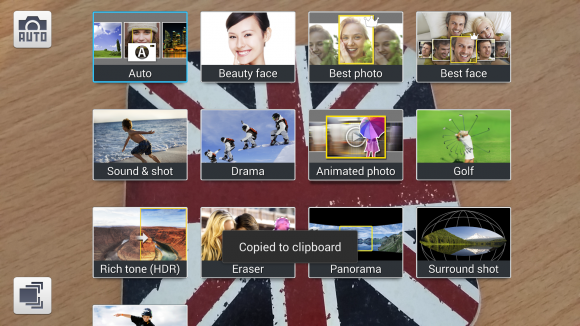 Інтерфейс програми Камера та режими зйомки запозичені у Samsung Galaxy Camera: натисніть на кнопку опцій, яка розташована праворуч, і з'явиться список налаштувань та додаткових можливостей. Якщо вам незручно працювати зі списком, то все опції одночасно можна побачити, натиснувши на кнопку в нижньому лівому кутку екрана. Режимів зйомки досить багато: 12, не враховуючи Автоматичний.