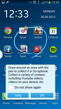 Це друга функція Air Command. Ви можете написати, що завгодно на екрані, і воно збережеться у вашому віртуальному альбомі. Scrap Booker дає більший контроль над тим, що ми зберігаємо з браузера і дає можливість приєднати додаткові деталі до того, що поміщається в віртуальний альбом. Крім того, ми можемо додавати теги і текстові нагадування, які потім можна буде відшукати за допомогою S Finder.