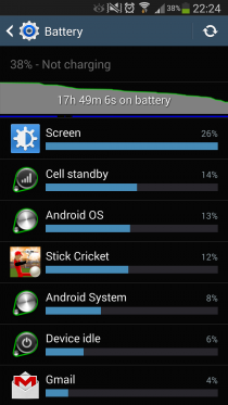 Витрата енергії відносно низький. Час відтворення музики, 20 хвилин гри, а також спілкування в соціальних мережах знизять рівень заряду всього на 7%. Перегляд цілого фільму з максимальною яскравістю екрану зменшать заряд Galaxy Note 3 на 13%.