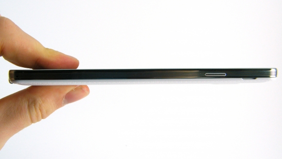 Зовні телефон нагадує Galaxy S4, тут є такий же пластиковий обідок навколо граней, зроблений під метал, через якого пристрій виглядає багатше. Розмір телефону 151.2 x 79.2 x 8.3 мм, вага 168 грам. Він трохи менше, ніж його попередник, але телефон все ще досить великий і важкий в порівнянні з іншими моделями на ринку. Ви навряд чи зможете носити його в кишені брюк.