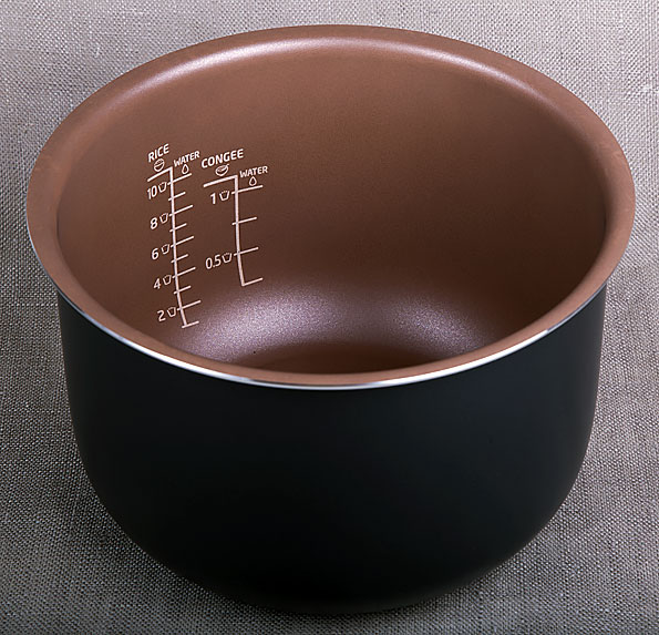 Всередині чаші є ділення, що пояснюють користувачеві, скільки потрібно лити води на певну кількість рису.