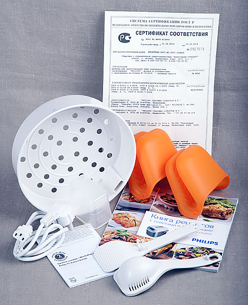 У комплекті з пристроєм додається аксесуар - силіконові рукавички для зручного вилучення чаші. Це доповнення доведеться до речі, так як у внутрішній каструлі немає власних ручок для зручного виймання її з корпусу. Функцій мультиварка Philips HD3058 має трохи, але всі необхідні є. Виділяються два режими: це програма для виготовлення йогурту і «Свій вибір», який дає можливість готувати на низьких температурах.