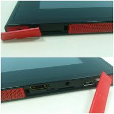 Всі інші порти і елементи управління - на бічних торцях пристрою. Праворуч - кнопки включення / блокування і регулювання гучності, зліва - гніздо 3,5 мм для навушників, під невеликий заглушкою - слот для SIM-карти, а під великий - відразу microSD, microUSB, miniHDMI і кругле, як у старих телефонів, гніздо для зарядки.