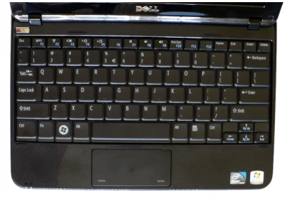 Dell Inspiron Mini 10 має класичну клавіатуру , з білими, добре видимими позначками на чорних клавішах. Їх розміщення є стандартне, з клавішею Ctrl в лівому нижньому кутку і Delete в правому верхньому. Величина пластинок клавіш 17x16 мм, це є трохи менше ніж в великих моделях ноутбуків. Завдяки цьому немає проблем з потраплянням в відповідні клавіші. Менші стрілки і клавіші функцій, зате пластинки в першому ряду клавіш трохи вищі, що не впливає жодним чином на комфорт листи.