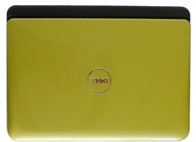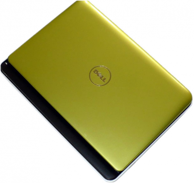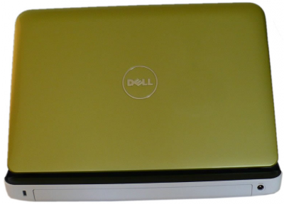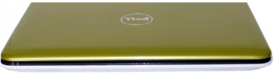 Черговим елементом тестового екземпляра, який відзначається, є світло-зелена кришка ноутбука. Виробник хотів створити враження зелені нефриту з блискучим оформленням. Трохи є моделей ноутбуків з таким кольором, навіть між ноутбуків, які найчастіше виступають в декількох колоритних різновидах. Крім зеленого ми маємо в Inspiron до вибору ще шість інших кольорів покриву екрану; інші елементи мають той же колір у всіх моделях. На жаль, оскільки поверхню покриву глянцева, дуже видно на ній неестетичний відбитки пальців. На її ресурсі розміщено срібний логотип Dell і всього лише в цьому місці поверхня трохи прогинається під натиском. В цілому кришка міцна і добре захищає матрицю.