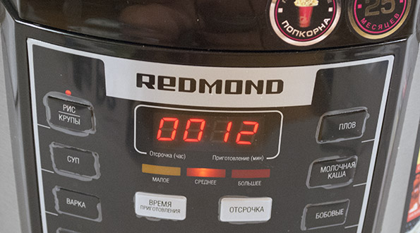 Зовні мультиварка виглядає строго. Коштує недешево. При цьому вона не просто мультиварка, а скороварка. У Redmond M110 можна виставляти час приготування з кроком в одну хвилину, тільки на незрозумілою температурі. Окремі кнопки для приготування деяких страв несуть сумнівний сенс - в мультиварці, які будуть дешевше, можна готувати ту саму страву, хіба що назва режиму буде інше. Мультиварка вміє готувати попкорн, але мікрохвильовка зробить це за часом швидше.