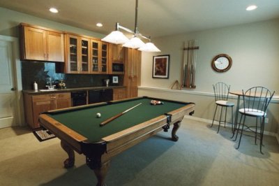 При плануванні домашньої кімнати для більярду слід звернути увагу, по крайней мере, на дві речі. По-перше, більярдний стіл необхідно розташувати так, щоб за дальнім бортом (борт, у якого розставляються піраміда) не було вікон, скляних меблів, телевізора і інших предметів, що б'ються. Кулі іноді вилітають зі столу, так що слід заздалегідь потурбуватися про те, щоб можливі втрати були зведені до мінімуму. Також необхідно стежити за тим, щоб глядачі або суперник не стояли у далекого борту - найчастіше кулі вилітають саме при розбивці. Попадання сильно пущеного кулі в будь-яку частину тіла буде не тільки болючим, але і травмонебезпечним. Пол більярдної кімнати слід покрити щільним килимом або палас. Вилетів або впав куля може пошкодити підлогу, або, навпаки, може пошкодитися сам, і навіть розколотися.