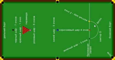 Маса куль для «снукера» становить від 142 до 156 г, а діаметр - 52,4 або 54,4 мм. За кожен результативний куля гравцеві нараховуються очки, вартість яких вказана в таблиці.