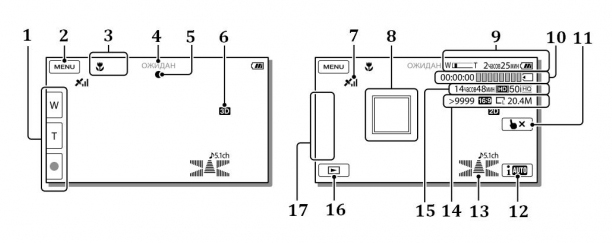 ** 7 ** - значок GPS. Актуальний він тільки для відеокамери Sony HDR-TD30VE.