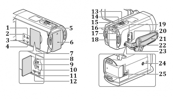 ** 20 ** - роз'єм для підключення відеокамери до телевізора за допомогою композитного кабелю A / V.