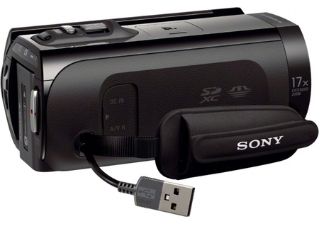 Як і у більшості інших моделей відеокамер Sony, у HDR-TD30E є вбудований в наручний ремінець кабель з роз'ємом USB. Він досить короткий, але при необхідності його можна використовувати з подовжувачем USB. У будь-якому випадку, як вже неодноразово показувала практика, така цікава задумка розробників знайшла своїх численних шанувальників.
