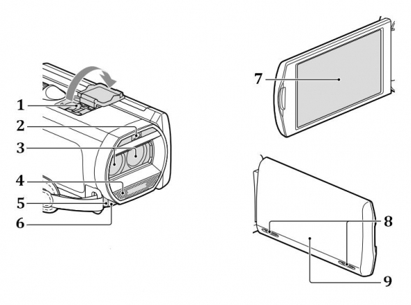 ** 9 ** - модель Sony HDR-TD30VE зі зворотного боку екрану має вбудований в корпус модуль GPS. В моделі Sony HDR-TD30E він відсутній.