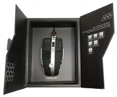 Миша упаковується в невелику картонну коробку чорного кольору. З огляду на топовий клас продукції, виробник приділив достатньо часу зовнішнім виглядом і оформленню коробки. На лицьовій стороні боксу можна побачити зображення контролера і короткий список відмінних рис моделі. На зворотному боці упаковки перераховані основні можливості миші, а також є фраза англійською мовою - The mission of Level 10 Mouse. Сама коробка складається з двох окремих частин. Якщо зняти картонну рамку, то відразу можна побачити основний контейнер, в якому знаходяться головні компоненти. Корпус маніпулятора щільно зафіксований за допомогою стяжок і захищений з фронтальної сторони прозорою кришкою з тонкого пластику.